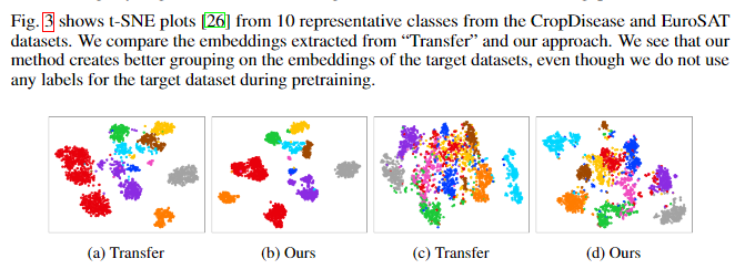 - 聚类质量:Ours 在 EuroSAT(85.2%)和 CropDisease(91.3%)上 V-score 最高